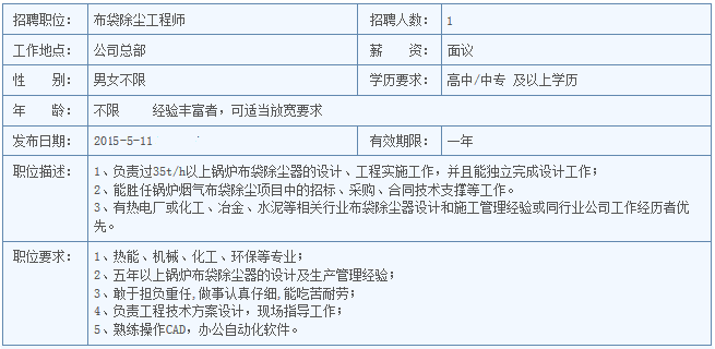 2、布袋除尘工程师