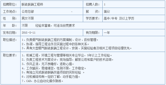 3、脱硫脱硝工程师