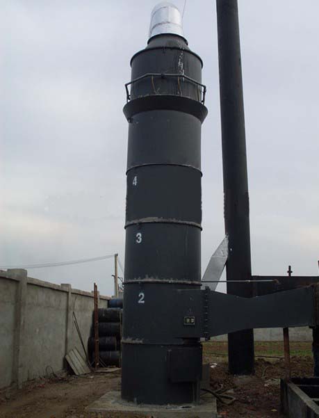 口烟道进入筒体。筒体是一个圆形筒体,水从除尘器上部注水槽进入筒内,使整个圆筒内壁形成一层水膜从上而下流动