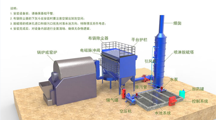 吹灰系统,压缩空气管路及电气,最后安装布袋和笼骨和涂面漆。