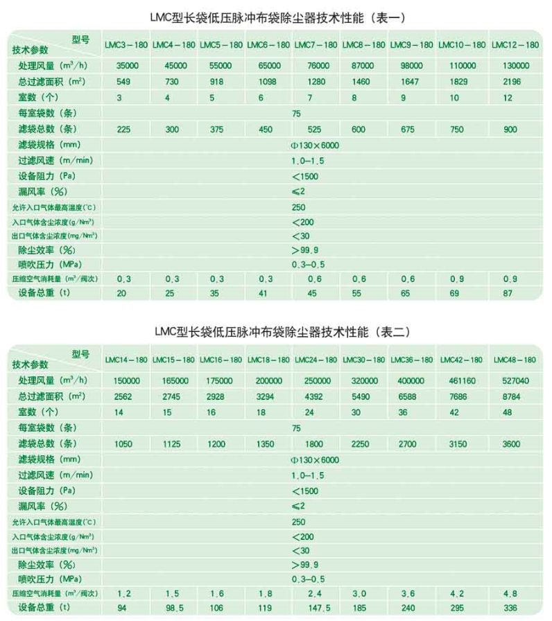 LMC型长袋低压脉冲布袋除尘器处理风量大,清灰效果好,除尘效率高,运行可靠,维护方便,占地面积小,广泛